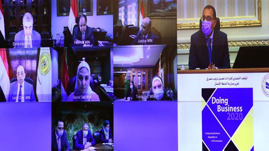 عقد الدكتور مصطفى مدبولى رئيس مجلس الوزراء اجتماعا عبر تقنية الفيديو كونفرانس مع وزراء الكهرباء والعدل وا
