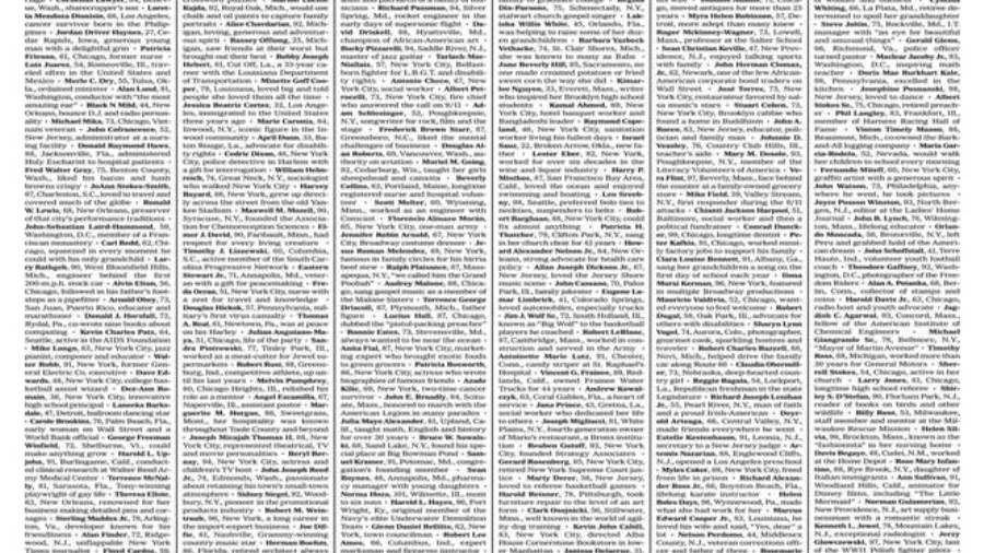 ملأت صحيفة نيويورك تايمز صفحتها الأولى من الطبعة الصادرة اليوم الأحد بأسماء بعض الذين توفوا بسبب فيروس كورون
